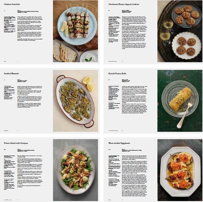 “그리스 요리의 대모(Grand Dame)”로 불리는 저자의 베스트셀러 『Greece: The Cookbook』에서 가장 사랑받은 요리만을 엄선해 수록했다. 수프와 샐러드, 야채 요리, 콩과 파스타, 생선과 해산물, 고기 요리, 파이와 빵, 쿠키와 케이크, 페이스트리와 캔디 등 다양한 챕터를 통해 그리스 요리의 폭넓은 세계를 탐험할 수 있다. 와인에 졸인 오징어, 양고기 꼬치, 치킨 수블라키, 시금치 치즈 파이, 그리고 헤이즐넛 케이크, 바클라바, 카타이피 롤, 아몬드 페어 디저트까지, 그리스의 향과 색, 따뜻한 미소를 그대로 전한다.