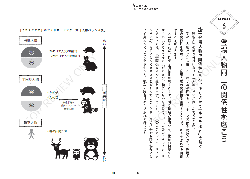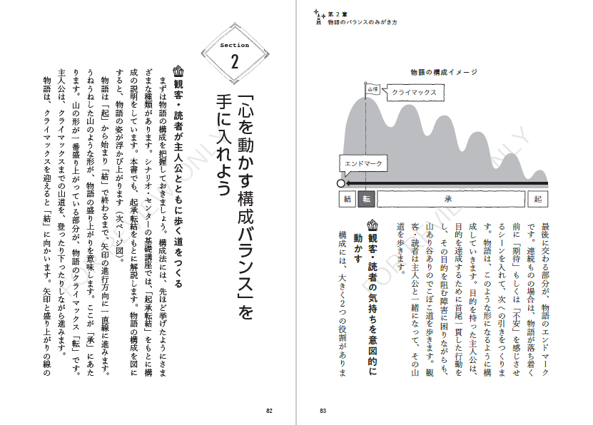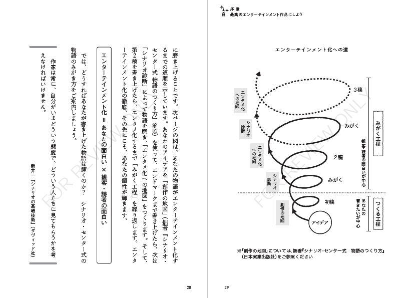 영화, 드라마, 연극 시나리오뿐 아니라, 소설, 만화, 애니메이션, 게임 시나리오, 자서전이나 에세이까지 - 장르를 불문하고 모든 스토리 창작에 적용할 수 있다. 이야기의 전체상을 진단하는 ‘이야기 재고 정리’, 캐릭터 붕괴를 막는 ‘인물 관계도’, 관객, 독자의 마음을 의도적으로 움직이는 ‘구성 밸런스’, 주제를 전달하는 ‘구성 연결 시트’ 등, 창작의 완성도를 높이는 오리지널 퇴고 도구도 풍부하게 수록했다.