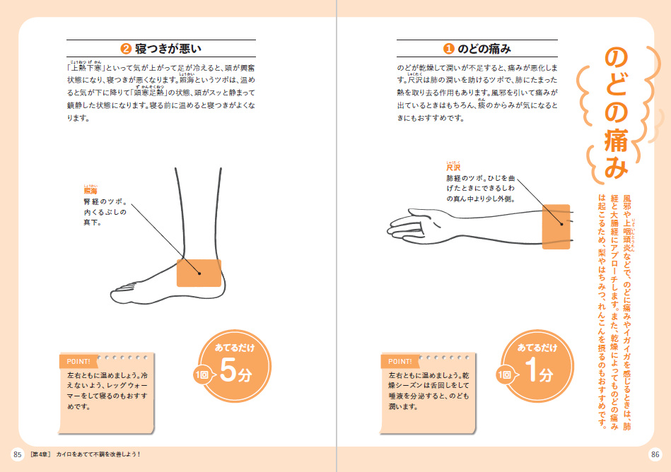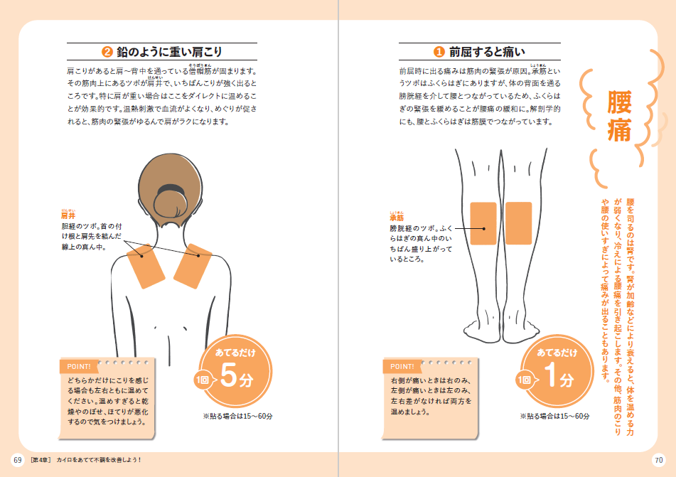 “요즘 왠지 몸이 무겁다” “어깨 결림이나 허리 통증이 괴롭지만 병원에 갈 정도는 아닌 것 같다” “갑자기 불안감이 밀려온다.” “밤중에 몇 번씩 깨서 피로가 전혀 풀리지 않는다”… 이 책은 이러한 고민을 가진 사람들에게 ‘혈자리에 핫팩을 대는 셀프케어’를 소개한다. 팥을 넣어 만든 핫팩이나 시중에 판매하고 있는 붙이는 핫팩을 활용해, 혈자리 주변을 따뜻하게 해서 다양한 신체의 불편함을 간단하게 개선하는 방법을 알려준다.