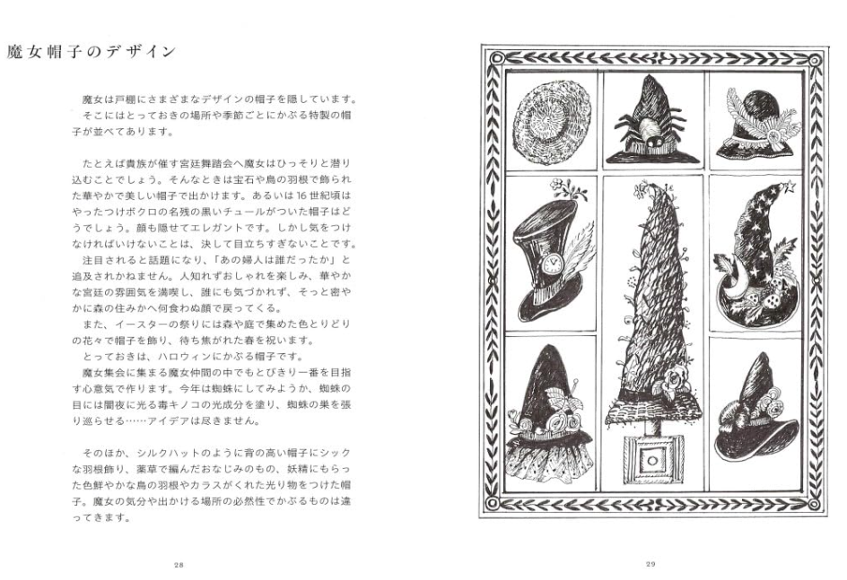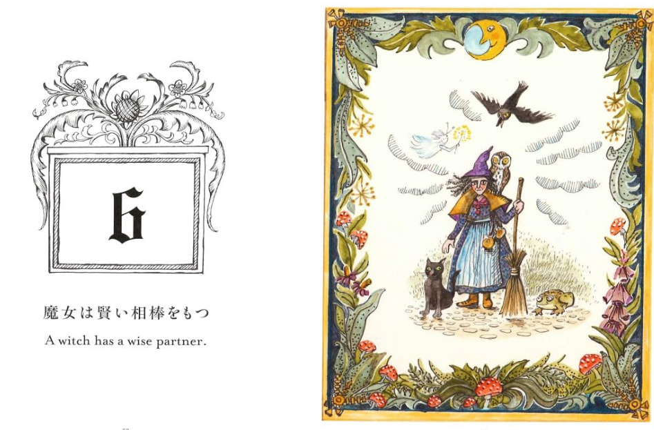 마녀는 집을 지킨다 / 마녀는 모자에 집착한다 / 마녀는 멋진 빗자루를 가진다 / 마녀는 약주머니와 큰 가마솥을 가진다 / 마녀는 멋을 즐긴다 / 마녀는 현명한 동반자를 가진다 / 마녀는 자신만의 인형을 가진다 / 마녀는 손수 만드는 일을 즐긴다 / 마녀는 사랑하고, 작별을 고한다 / 마녀는 언제나 여행한다 / 마녀는 전세계에 존재한다 / 마녀는 추억을 소중히 여긴다 / 마녀는 마녀로서 살아간다 |