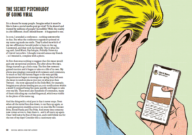 WHY YOU CAN’T STOP CHECKING YOUR PHONE / THE PSYCHOLOGY BEHIND ‘HATE-FOLLOWING’ / THE SECRET PSYCHOLOGY OF GOING VIRAL / HOW SOCIAL MEDIA CHANGES THE WAY YOU SEE YOURSELF / ARE YOU ‘AUTHENTIC’? / THE BAADER–MEINHOF PHENOMENON: WHY SOMETHING WE’VE JUST HEARD ABOUT APPEARS EVERYWHERE / WHO DO WE TRUST?