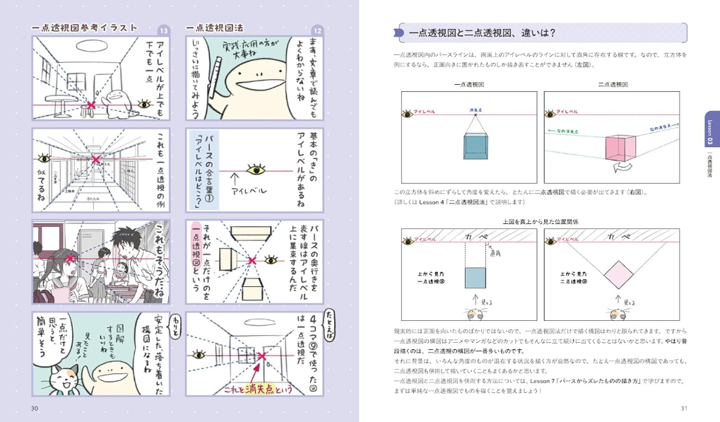 일러스트와 만화 제작에 꼭 필요한 원근법을 쉽고 재미있게 익히도록 구성했다. 고양이 ‘미치’가 원근법을 배워가는 4컷 만화를 곁들여, 그리는 순서까지 한눈에 이해되는 도해와 워크로 차근차근 설명한다.