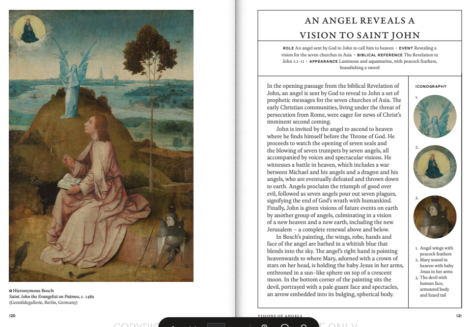 전세계 교회와 미술관, 박물관에 전시된 작품 속 성인, 천사, 요정, 악마 등 신성하고 신비로운 존재들의 상징과 이야기를 쉽게 이해할 수 있도록 안내한다. 각 권은 성인, 천사, 악마, 요정 등을 주제로, 100점이 넘는 작품을 통해 상징적 요소를 클로즈업 이미지로 자세히 보여 주고, 간결하게 설명한다. 또한 주요 특징과 역사적·문화적 의미를 한눈에 볼 수 있는 핵심 정보도 수록했다. 각 권의 마지막에는 도시별로 실제 관람이 가능한 주요 작품 목록을 정리해 수록했다. 2027년 봄에는 <성인>과 <천사>가, 2028년 봄에는 <악마>와 <요정>이 출간될 예정이다. |