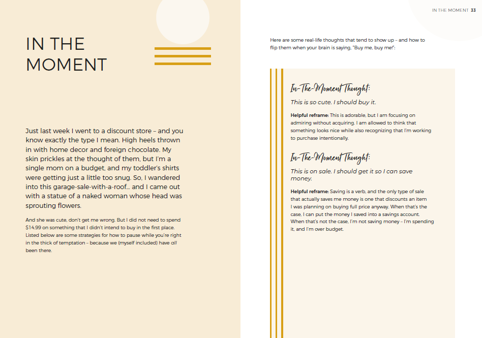 Drowning in Clutter / Craving Less / Letting Go / Grabbing Quick Wins / Digging Deeper / The Other Side / Worksheet: The Think Tank